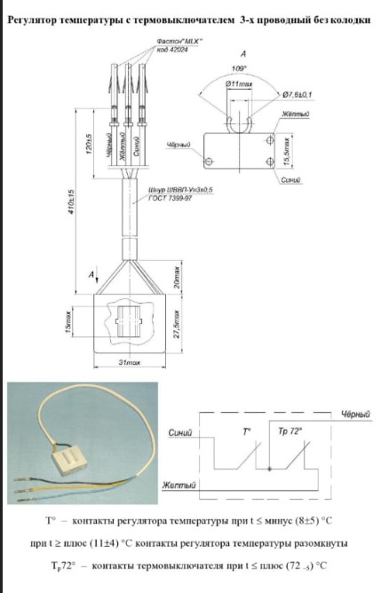 Температура срабатывания на размыкание цепи = + 10°C,
