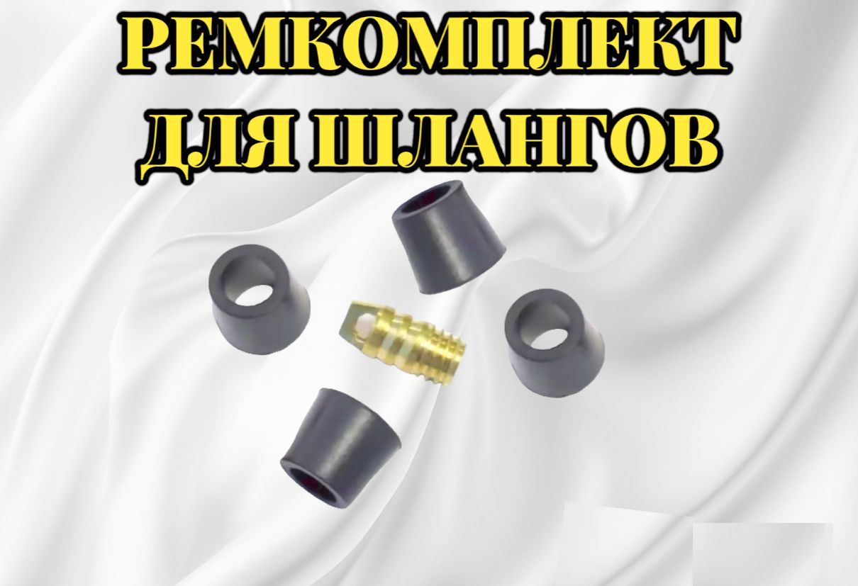 Ремкомплект для фреоновых шлангов: резиновые уплотнители и латунный депрессор, резиновые манжеты - 3 шт, депрессор - 1 шт.