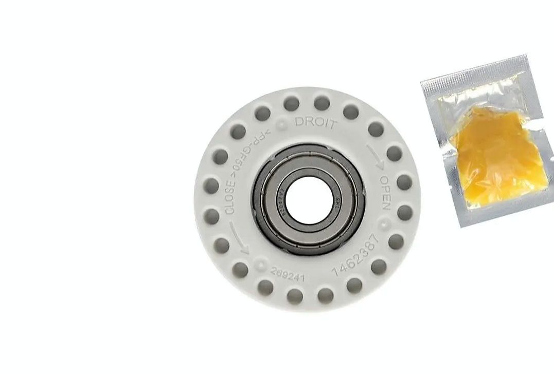 Суппорт ступица (опора с подшипником 6204ZZ - 20 x 47 x 14 мм закрытый тип с маталлическими шайбами) в сборе с прокладками и смазкой для стиральной машины AEG с верхней загрузкой.
