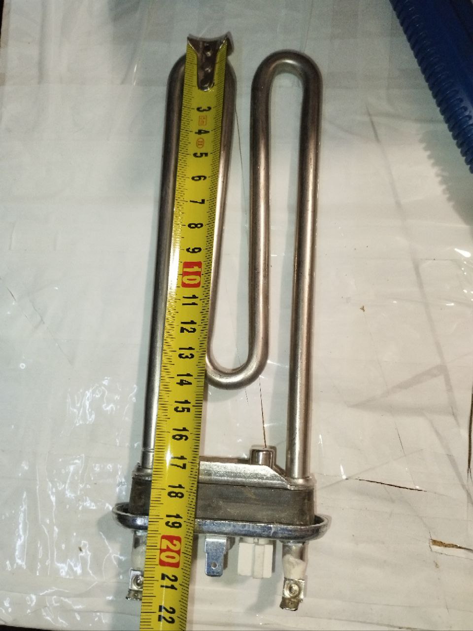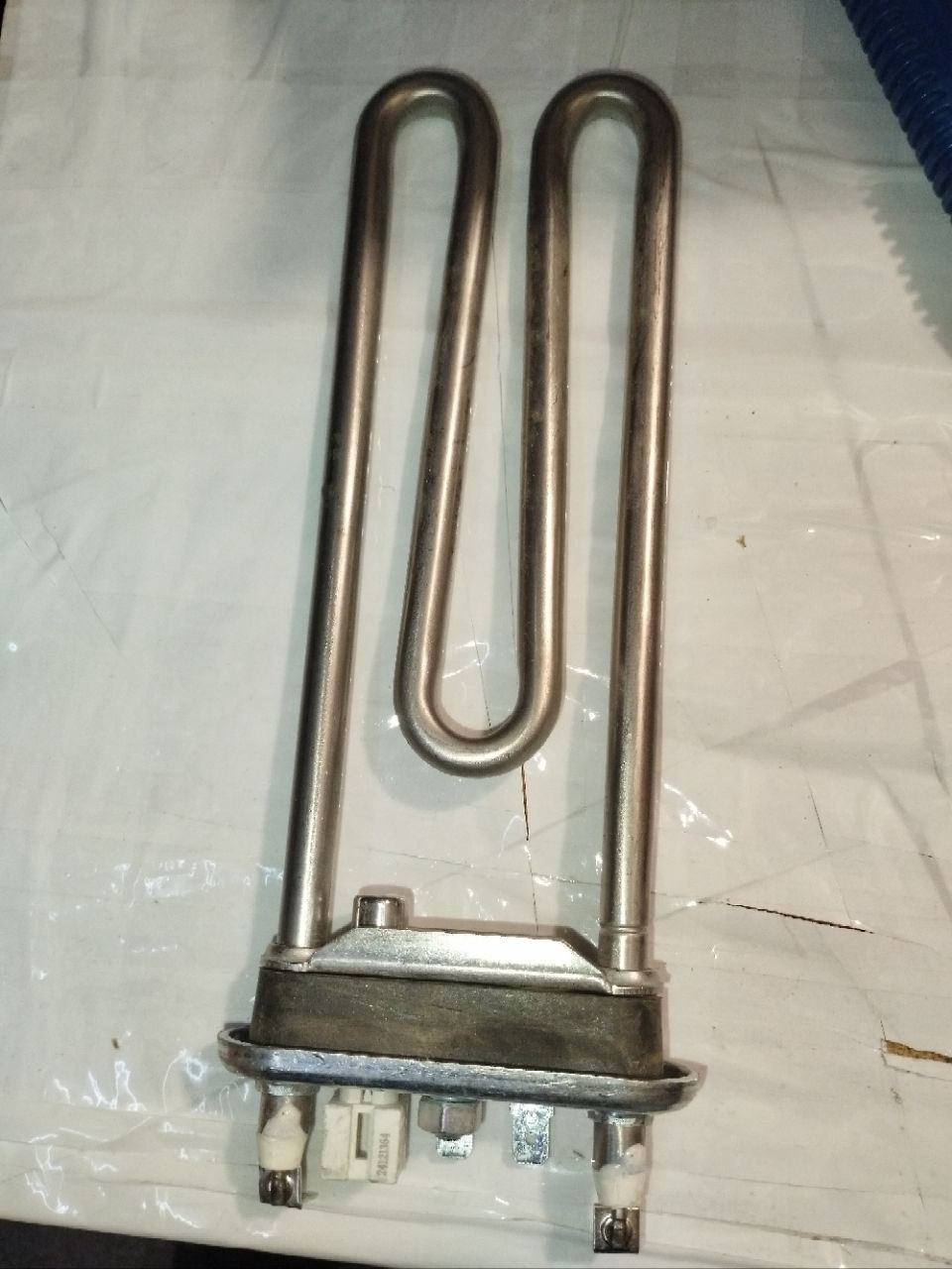 Нагревательный элемент или, как его ещё называют, ТЭН для стиральной машины – это нагревательный элемент. Его основная задача - нагреть воду до необходимой температуры в стиральной машине. Внешне он напоминает изогнутую трубку. Внутри такой трубки находится пружина, чаще всего пружина - это токопроводящая нихромовая нить, которая нагревается при подаче на неё питания.