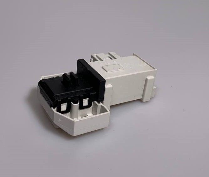 длина: 71,2 мм. Ширина: 50 мм. Количество контактов: 3. Предназначено для блокировки дверцы во время всего цикла стирки. Причиной поломки может быть короткое замыкание или износ биметаллических пластин.